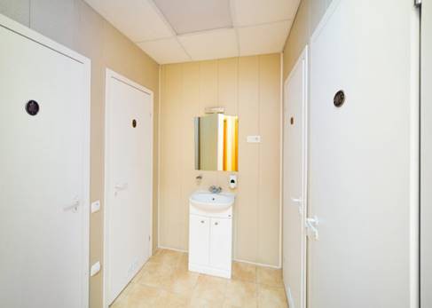 В номерах класса «Эконом» душ и туалет находятся рядом с номером в коридоре (душ/туалет на 2-3 номера), либо в блоке (на 2 номера).